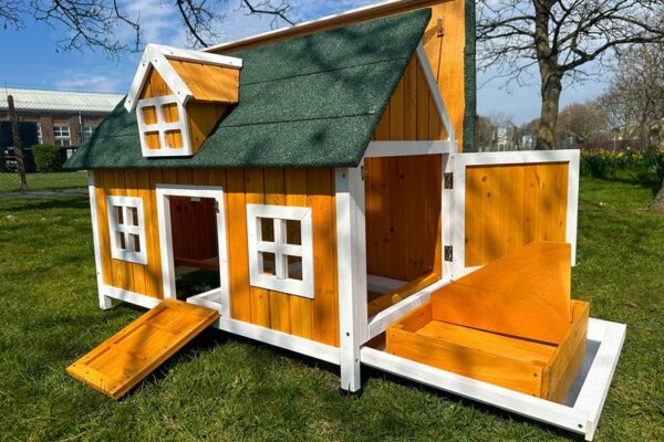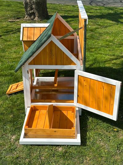 This super wooden chicken house will look fantastic in any back garden and is built to last. The Farm House Natural Chicken Coop comes flat packed ready for straight forward easy home assembly.