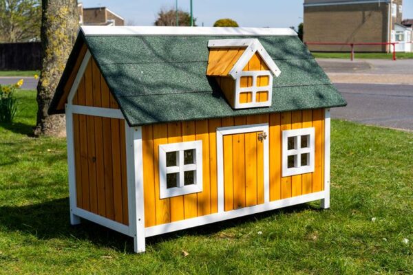 The Farm House Natural Chicken Coop measures including nest box and roof overhangs approx 115cm wide x 68cm deep x 86cm high